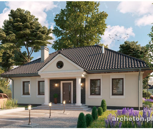 Bungalow Grundriss mit Walmdach, 3 Zimmern und 2 Bädern