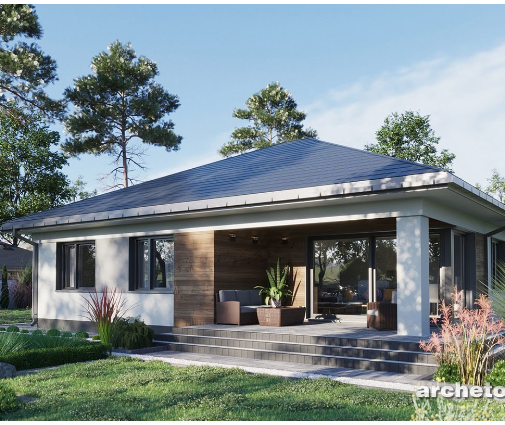 Moderne Bungalow Grundriss mit Walmdach und 4 Schlafzimmern